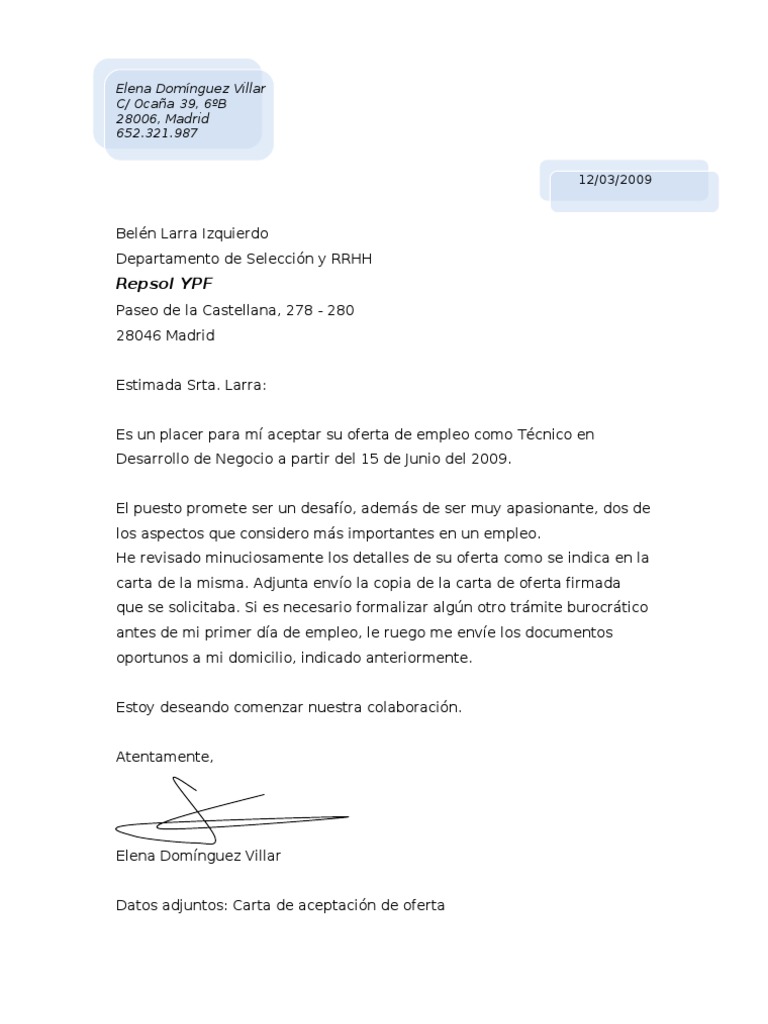 Ejemplo De Carta De Aceptacion Oferta via es.scribd.com